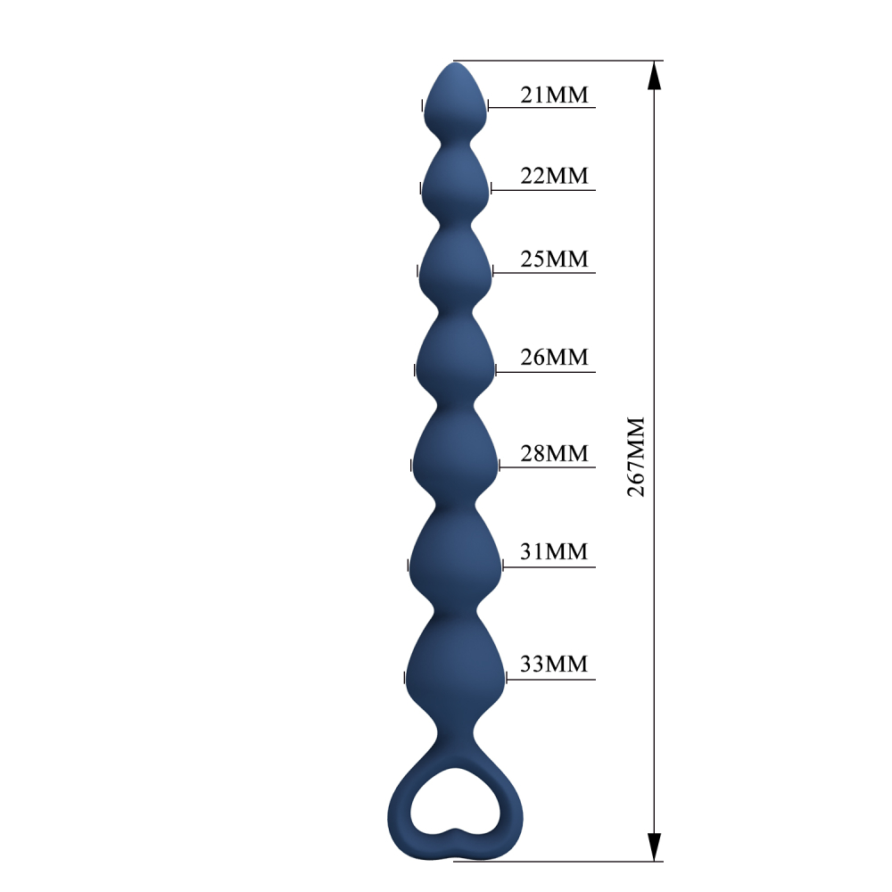 Анальная цепочка увеличенного размера создана для более интенсивных ощущений. Изготовлена из премиального силикона, имеет длину 26,7 см и полностью водонепроницаема. Постепенно увеличивающийся диаметр обеспечивает выраженное растяжение и максимальное удовольствие, а материал безопасен для тела и прост в уходе. Идеальный выбор для тех, кто ищет более глубокий и насыщенный опыт. Минимальный диаметр: 2,1см. Максимальный диаметр: 3,3см.