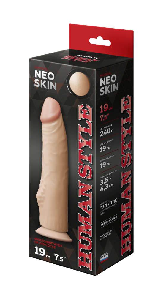 Реалистичный фаллоимитатор телесного цвета. Имеет форму члена с ярковыраженной головкой. Необычайно приятный, рельефный, выполненный из материала «Неоскин» , передающий эффект мягкой реалистичной текстуры кожи, не имеет швов. В основании имеется отличная присоска. Характеристика: общая длина – 19 см, рабочая длина-18,5 см, максимальный диаметр- 3,8 см. Упаковка- картонная коробка с принтом.