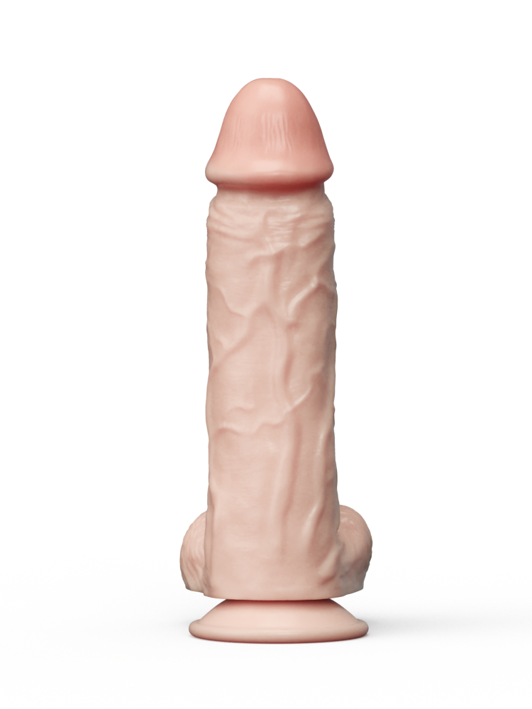 Реалистичный фаллоимитатор телесного цвета на присоске. Рельефный, мягкий и приятный на ощупь фаллоимитатор, выполненный из «Киберкожи». Общая длина –20 см, рабочая длина – 15,5 см, максимальный диаметр – 4.5 см. Упакован в прозрачную пленку.