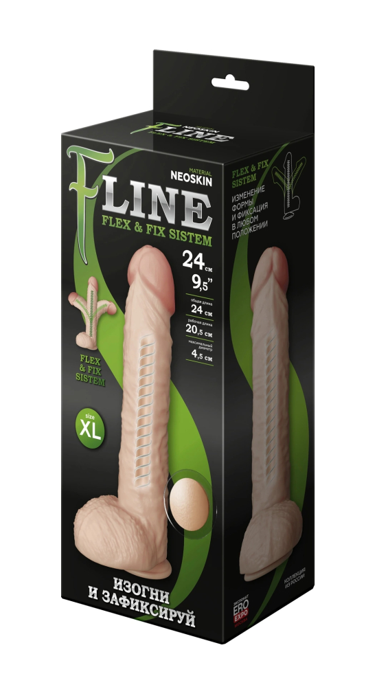 Фаллоимитатор серии "Flex Fix Sistem" изготовлен изТПР, имеет многослойнуюструктуру. Наружная оболчка сделана из мягкого материала NEOSKIN. Внутренний каркас изготовлен из более прочного полимера, который можно изогнуть и придать ему любую форму. Имеет мощную присоску. Модели этой линейки имеют размер немного больше среднего. Может использоваться как насадка на пояс для страпона с соединением через кольцо.