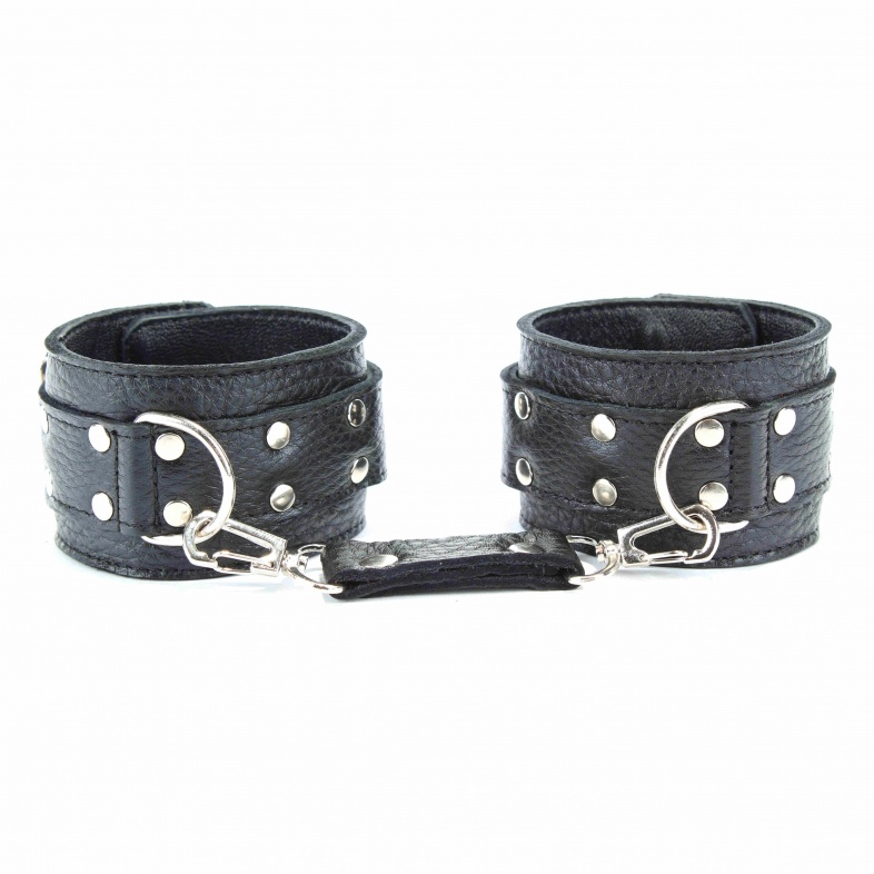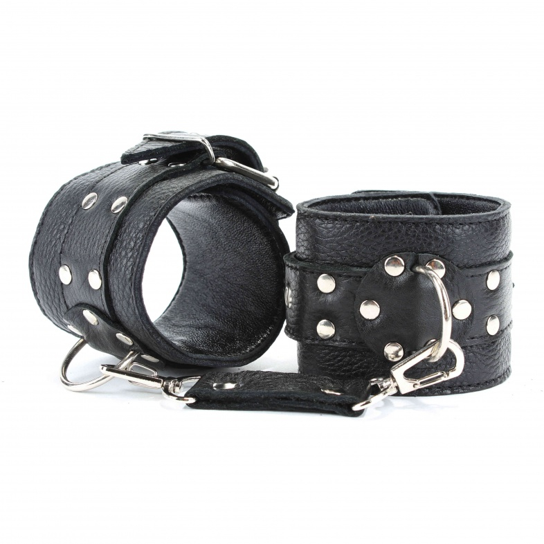 Роскошные кожаные наручники обеспечивают надежную фиксацию Вашего партнера. Силу сжатия фетиш-изделие 51005ars регулирует с помощью ремня. Кожаные наручники декорированы заклепками, они придают поножам соблазнительный внешний вид. Благодаря встроенным кольцам, фетиш-изделие позволяет регулировать длину с помощью цепи с металлическими карабинами. Это аксессуар для тех, кто хочет предаться власти сексуальных фантазий своего сумасшедшего партнера. Характеристики наручники из кожи с пряжкой 51004ars: цвет – красный с черным, материал – кожа, металл, длина цепочки – 12 – 25 см, диаметр – 6 см, производитель – BDSM Арсенал (Россия).