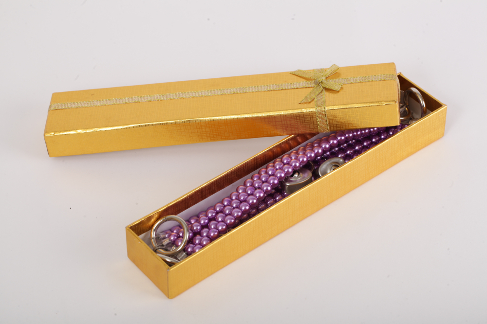 Красивые наножники из сиреневого жемчуга с замочками в виде сердца и четырьмя ключиками. Чтобы ограничивать движения есть небольшая цепочка с двумя карабинами. Характеристики: длина наножника- 26см, ширина-2,5см, длина цепочки- 13см. Упаковка- картонная золотая коробка с бантиком.