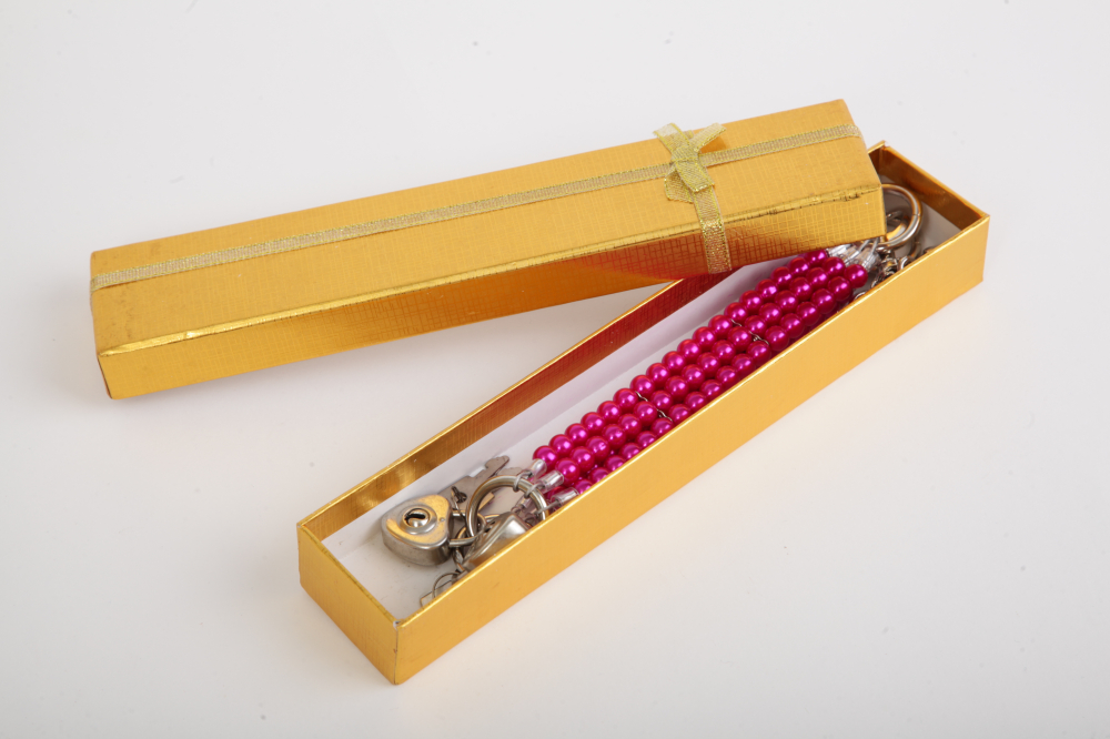 Наручники цвета Фуксии с тремя нитями из жемчуга. Закрываются на замочки в виде сердечек с индивидуальными ключиками. Наручники можно соединить небольшой цепочкой с карабинами (длина- 13 см). Длина наручников- 20 см, ширина- 2,5 см. Упаковка- золотая подарочная коробка с бантом.