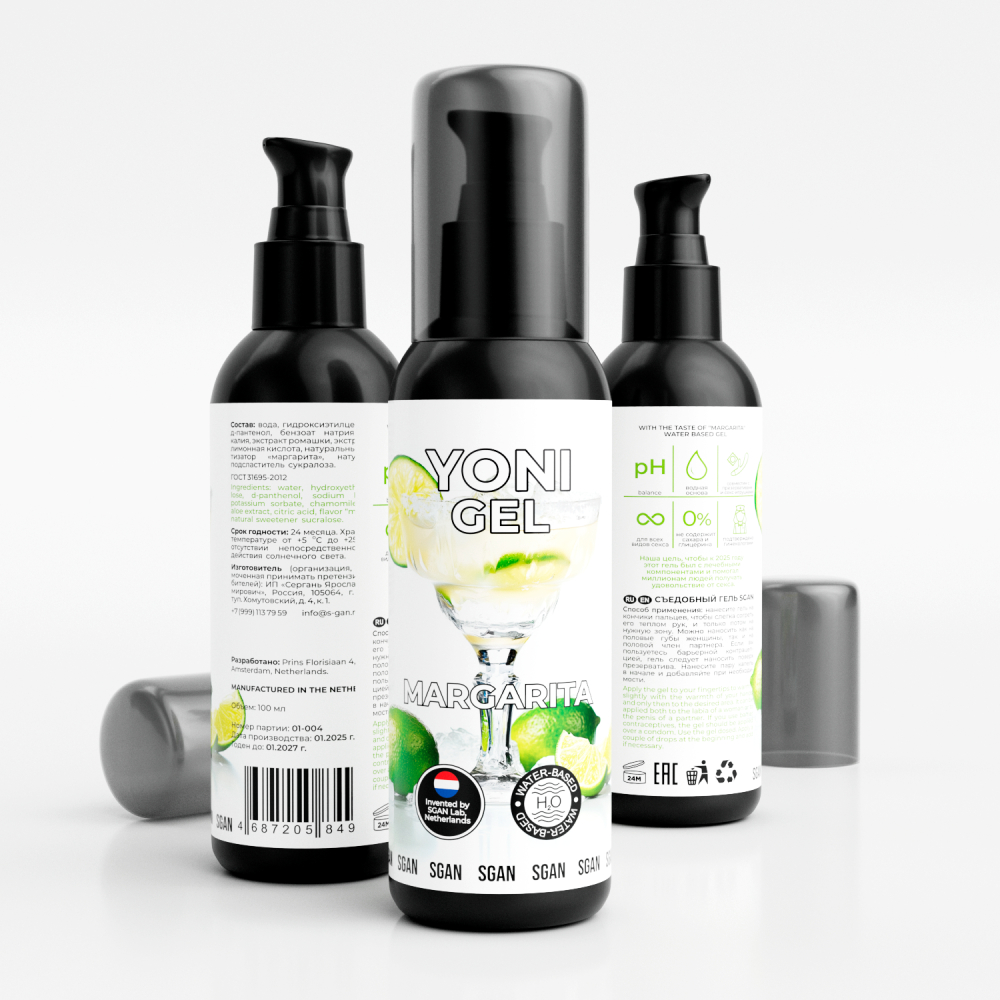 Лубрикант на водной основе “SGAN” со вкусом маргариты разработан сексологами в Нидерландах. Разработана с учетом физиологии, совмещает в себе вкус и аромат, при этом сохраняет все регенерирующие свойства классического лубриканта. Не оставляет липкости, без химического привкуса, не содержит сахара и калорий. Абсолютно безопасен для проникновения и при проглатывании. Сохраняет естественный pH баланс слизистых, не вызывает жжения и неприятных ощущений. Не содержит парабенов, силиконов, масел и красителей. Совместим абсолютно со всеми игрушками и презервативами, не разрушает их структуру, так как не содержит масел и силиконов.