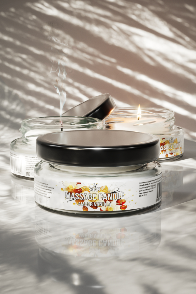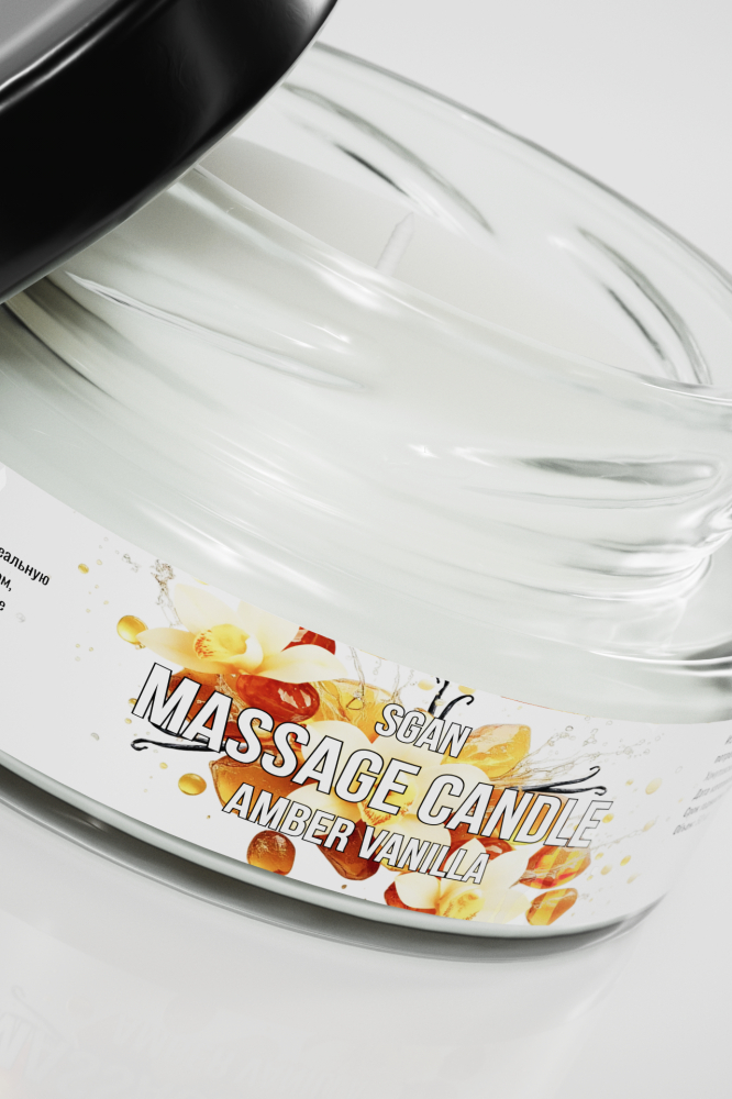 Натуральное твердое массажное масло SGAN с кокосовым воском и эфирными маслами "Амбра ваниль" для нежного ухода и расслабляющего массажа, для романтических вечеров с эффектом увлажнения для тела, 50 мл.