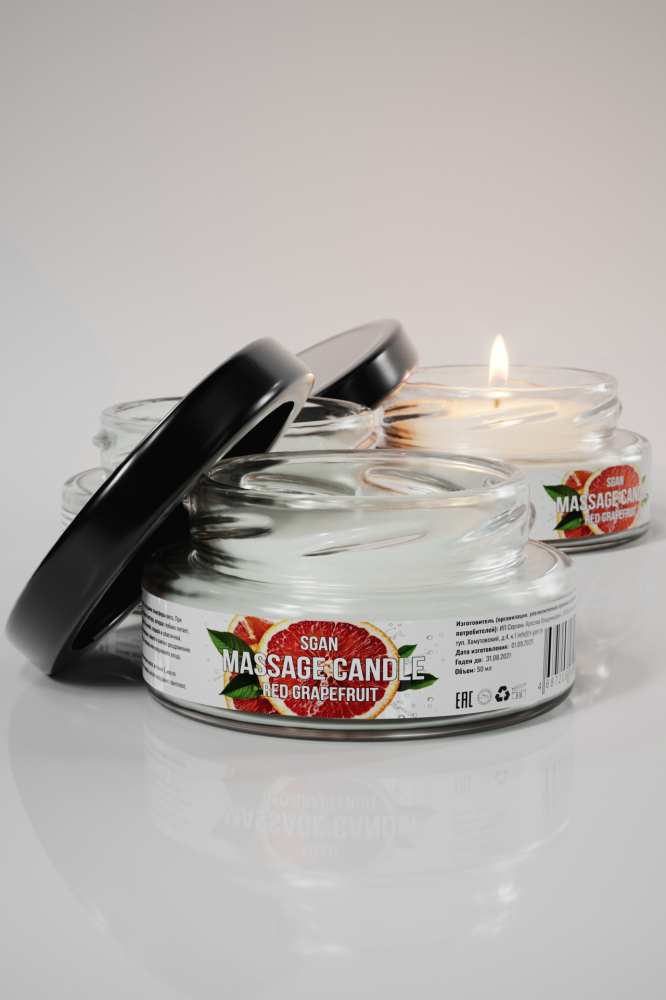 Натуральное твердое массажное масло SGAN с кокосовым воском и эфирными маслами "Красный грейпфрут" для нежного ухода и расслабляющего массажа, для романтических вечеров с эффектом увлажнения для тела, 50 мл.