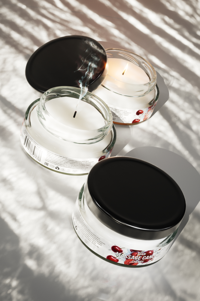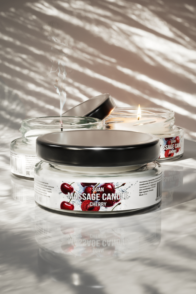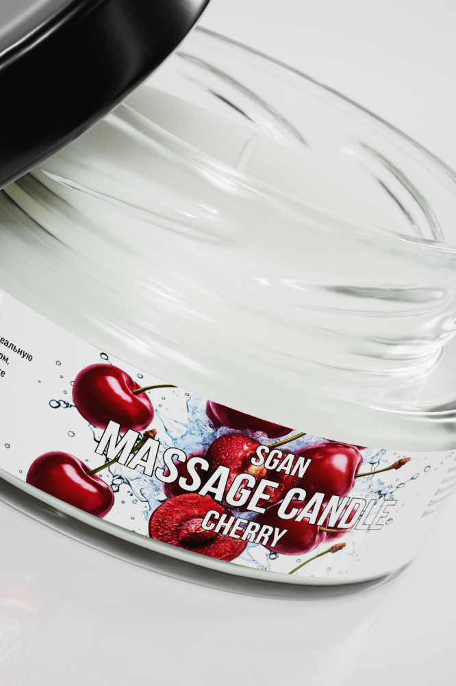Натуральное твердое массажное масло SGAN с кокосовым воском и эфирными маслами "Спелая вишня" для нежного ухода и расслабляющего массажа, для романтических вечеров с эффектом увлажнения для тела, 50 мл.