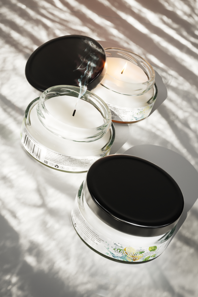 Натуральное твердое массажное масло SGAN с кокосовым воском и эфирными маслами "Зеленый чай" для нежного ухода и расслабляющего массажа, для романтических вечеров с эффектом увлажнения для тела, 50 мл.
