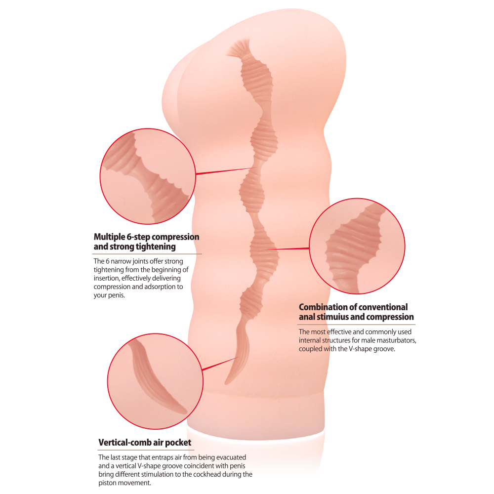 Мастурбатор анального типа от корейского бренда KOKOS коллекции Tong-Ggo. Изделие выполнено в телесном цвете и имитирует анальное отверстие с реалистичной внешней формой. Внутренняя структура включает 6 плотных колец-перемычек и V-образные рёбра, обеспечивающие эффект плотного сжатия и вакуума при использовании. Общая длина — 19 см, длина рабочей зоны — 16 см. Вес изделия — 580 г. Вибрация отсутствует. Поставляется в фирменной коробке. Производство: Южная Корея.