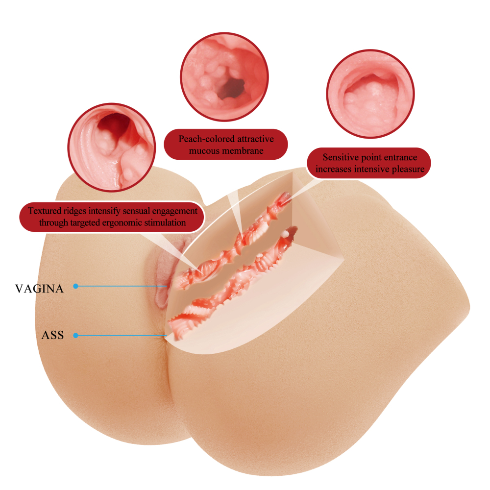 Реалистичный мастурбатор Vivian с вибростимуляцией создан для максимального удовольствия. Изготовленный из безопасного TPR-материала с реалистичной формой, он обеспечивает естественные ощущения и глубокое погружение. Устройство имеет 2 рабочих тоннелях: вагину и попку. Также оснащено 10 режимами вибрации и интимными звуковыми эффектами, полностью водонепроницаемо и легко очищается, что гарантирует долговечность и комфорт в использовании. Внутренняя структура продумана до деталей: персикового цвета слизистая оболочка создаёт эффект настоящей анатомии, вход с чувствительной точкой усиливает интенсивность стимуляции, а текстурированный рельеф обеспечивает целенаправленное воздействие для максимально насыщенных ощущений. Длина: 25см. Ширина 35см. Высота 20см.