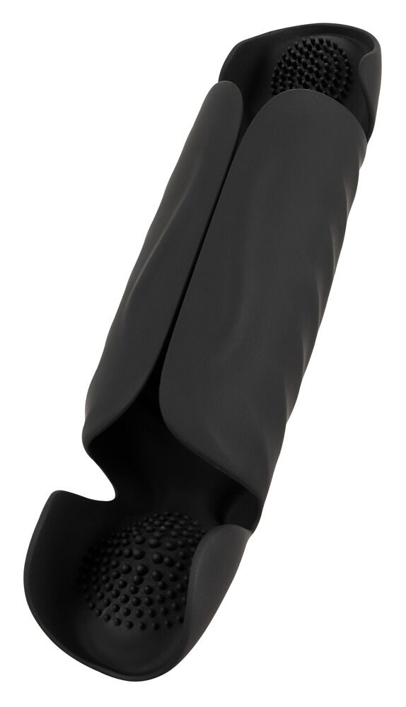 Мастурбатор Penis Trainer с 3-точечной стимуляцией имеет гибкие «крылышки», плотно обхватывающие ствол, головку и яички. Сегменты устроены так: головка — мягкие утолщения, средний сегмент — стимулирующие бороздки, сегмент яичек — твердые утолщения, обеспечивая всестороннее удовольствие и тренировку для повышения выносливости и силы, подходит при эректильной дисфункции. 3 моторчика — по одному в каждом сегменте, 10 режимов вибрации каждый, управляются отдельно кнопкой на устройстве. Шелковистый силикон обеспечивает комфорт. Перезаряжаемый, в комплекте USB-кабель. Общая длина 22,1 см, ширина 5,5 см. Сегмент головки 4,5 см, средний 12,1 см, сегмент яичек 5,5 см. Вес 211 г. Материалы: силикон, полиуретан, ABS.