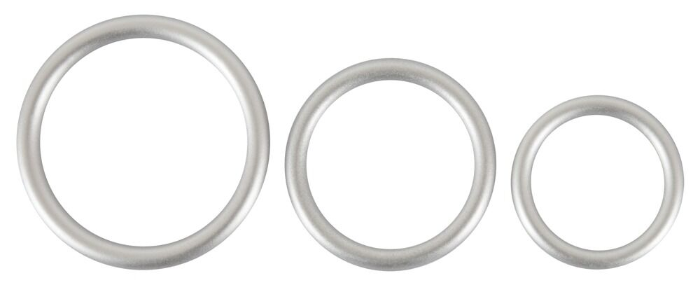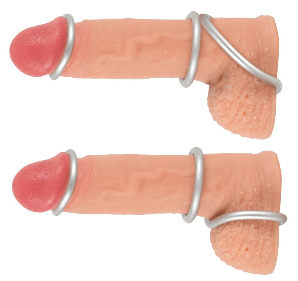Набор из трех силиконовых колец для пениса и яичек с металлическим дизайном. Обеспечивают комфорт и безопасность благодаря гибкому силикону. Кольца разного диаметра (3,3 см, 4 см, 5,1 см) плотно облегают, поддерживая длительную и твердую эрекцию. Подходят для мужчин, желающих усилить эрекцию и продлить удовольствие. Диаметры: 3,3 см, 4 см, 5,1 см. Толщина каждого кольца: 0,6 см. Цвет: серебристый. Вес: 30 г. Материал: силикон.