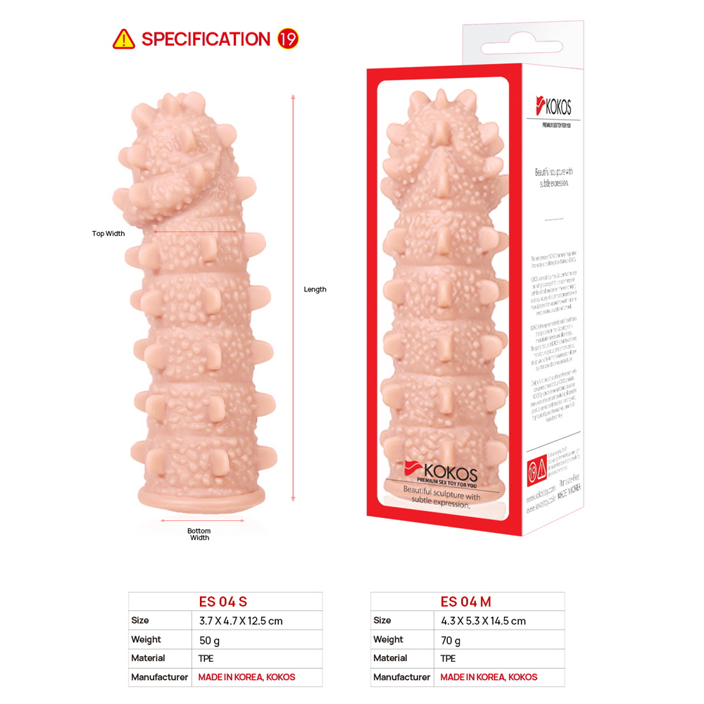 Насадка на пенис KOKOS Extreme Sleeve ES.004 размер M выполнена из ультрамягкого эластичного TPR. Поверхность покрыта рельефными бугорками и широкими шипами по всей длине, что обеспечивает дополнительную стимуляцию для обоих партнёров. Насадка надевается аналогично презервативу, немного снижает чувствительность, способствуя пролонгации. Увеличивает длину и диаметр. Длина — 14,7 см, диаметр — 4,3 см. Водонепроницаемость 100%. Производство: Южная Корея. Упаковка — коробка.