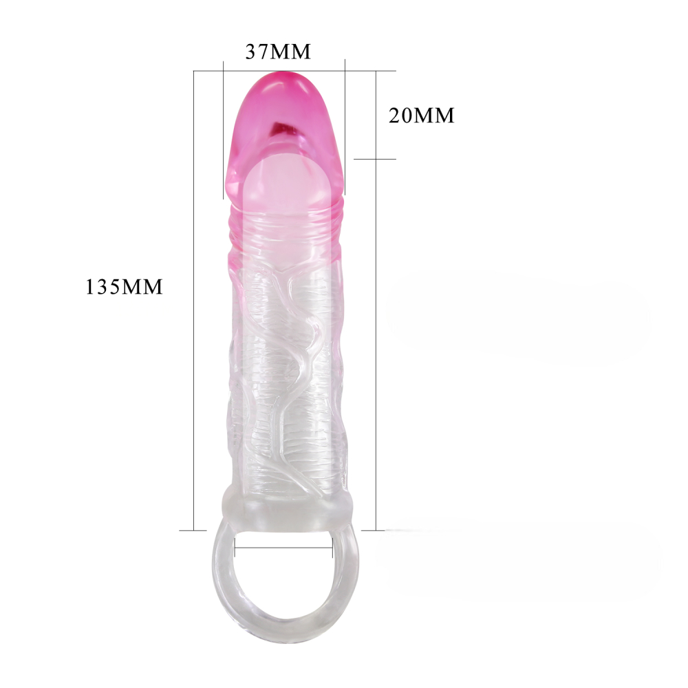 Насадка на пенис прозрачно-розовая TPR удлиняющая PRETTY LOVE BI-026210-2