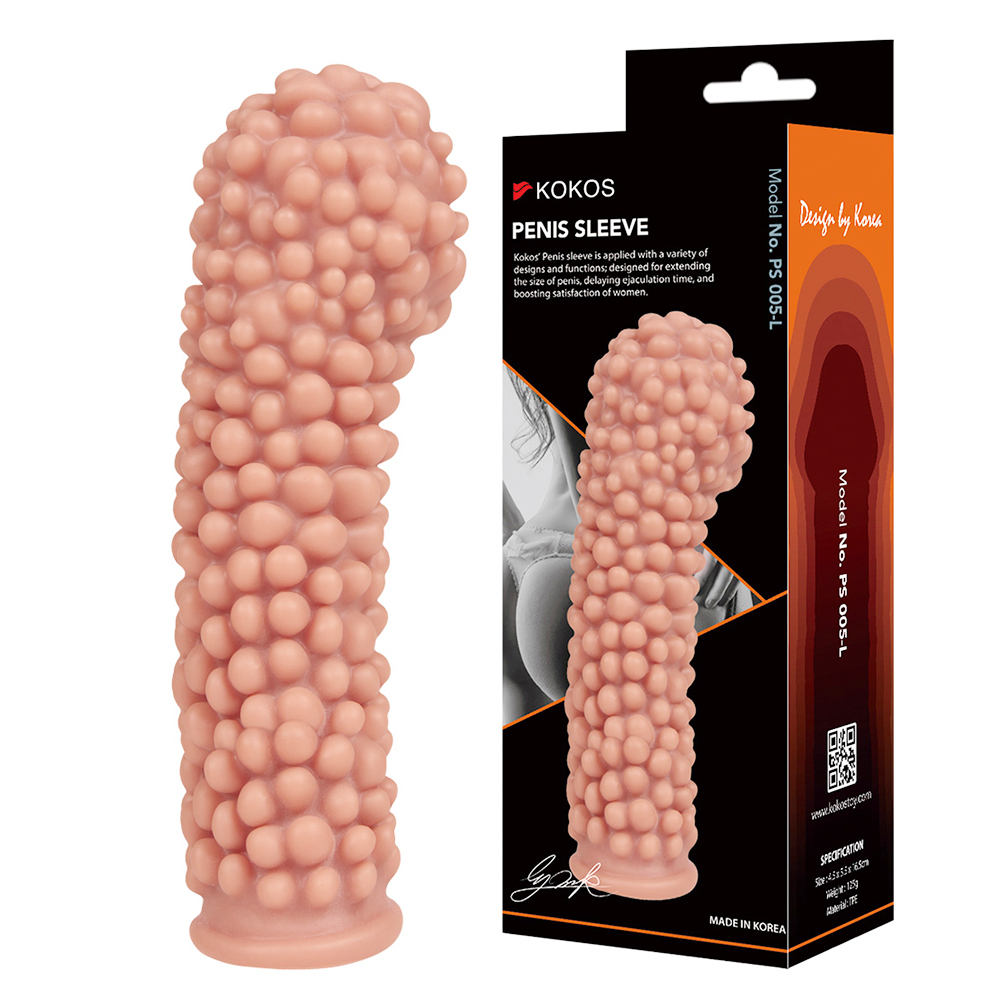 Насадка на фаллос KOKOS Penis Sleeve PS.004-L размера L выполнена из эластичного материала TPE телесного цвета. Поверхность покрыта крупными рельефными бугорками по всей длине, что обеспечивает дополнительную стимуляцию. Насадка легко надевается, плотно фиксируется и незначительно снижает чувствительность, способствуя продлению интимного контакта. Длина изделия — 16,4 см, диаметр — 5,5 см. Вес — 129 г. Упаковка — фирменная коробка. Производство: Южная Корея.