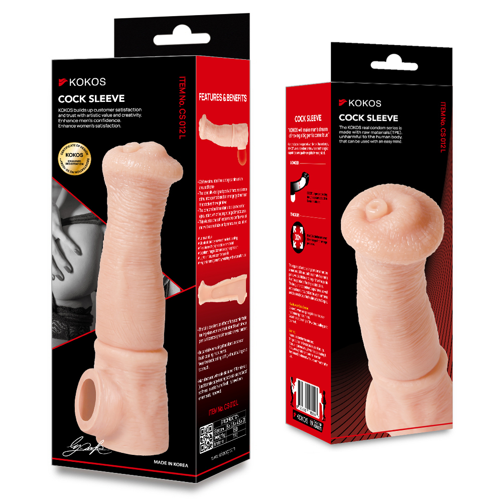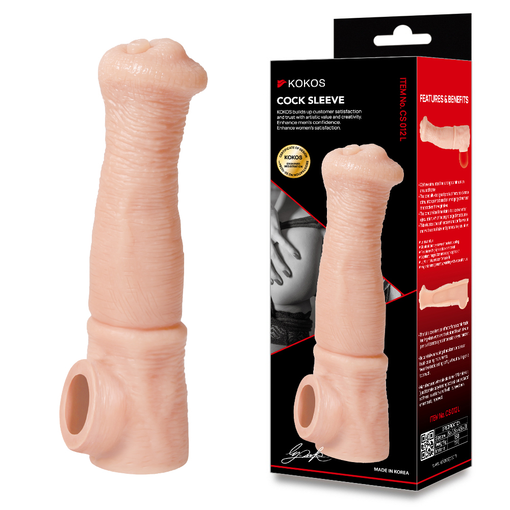 Насадка на пенис KOKOS CS.012-L размера L выполнена из ультрамягкого эластичного материала TPE телесного цвета. Фантазийный дизайн с крупной анатомической головкой и рельефной поверхностью обеспечивает дополнительную стимуляцию. Конструкция предусматривает отверстие для мошонки, что обеспечивает удобную фиксацию при использовании. Насадка надевается по принципу презерватива, увеличивает длину и диаметр, а также снижает чувствительность, способствуя продлению близости. Подходит для использования обоими партнёрами. Производство: Южная Корея. Упаковка: коробка.