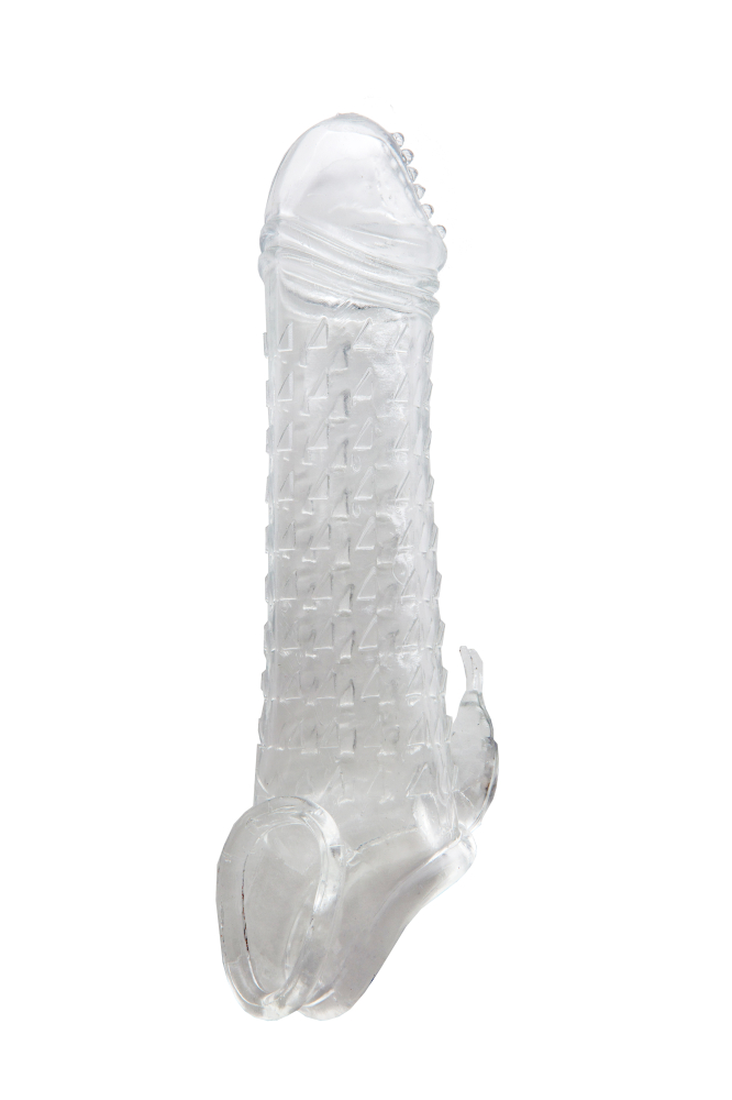 Насадка обеспечивает увеличение размера пениса в длину. Материал насадки - гипоаллергенный, создающий имитацию мягкой и шелковистой «кожи». Фиксирующее кольцо на мошонку не только удерживает фаллоудлинитель, но и благодаря сдавливанию может усиливать эрекцию. Изысканный рельеф насадки позволит одновременно стимулировать сразу обоих партнеров во время полового акта и дополнительно подарит приятные ощущения. Дополнительный стимулятор клитора не оставит равнодушной вашу партнершу. Насадка отлично тянется, продлевает время интимной близости и компенсирует анатомическое несоответствие между партнерами. Материал ТПЕ, общая длина 17 см, размер головки 3,5 см, толщина стенки 5 мм
