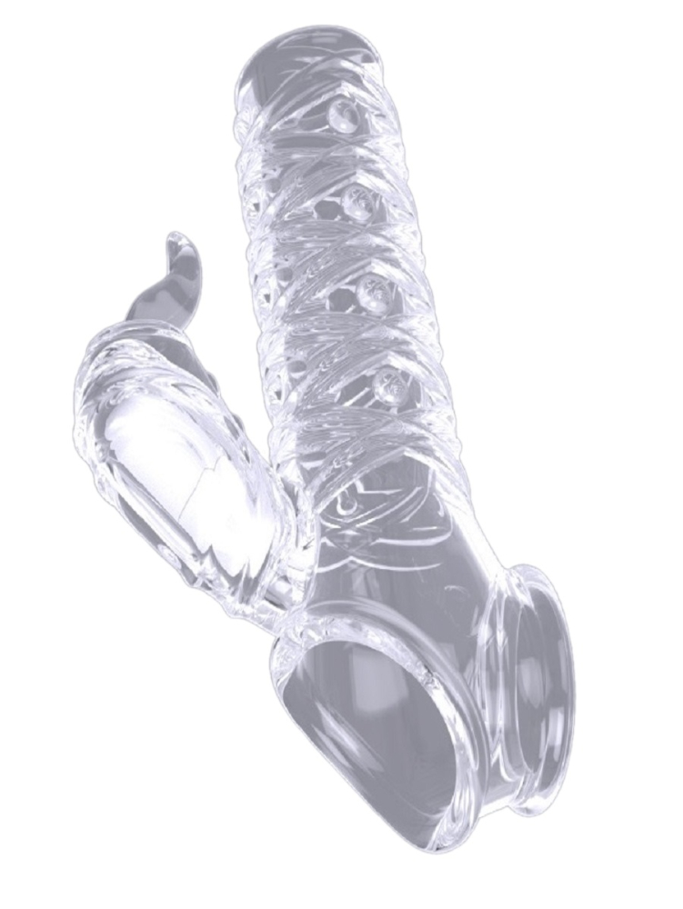 Вибронасадка сквозная рельефная с держателем мошонки и клиторальным стимулятором, 12 см 47562-MM