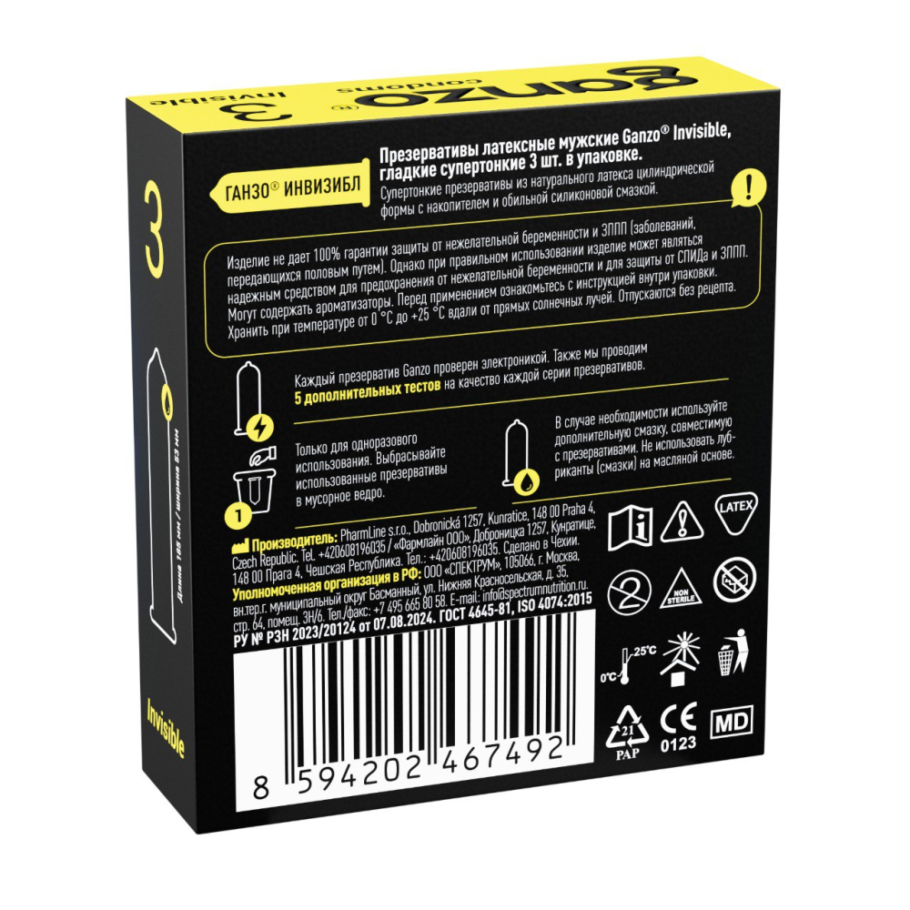Презервативы GANZO Invisible гладкие супертонкие c доп. смазкой №3 SRO 7492GZ