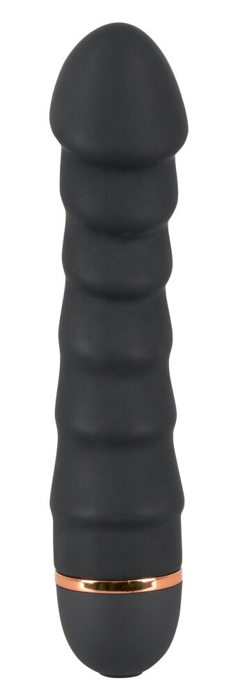 Вибратор на батарейках с гибким стволом, который сохраняет форму в нужной позиции. Имеет реалистичный вид и приятную на ощупь поверхность. Ствол оснащён 5 стимулирующими ребрами, 20 режимов вибрации управляются одной кнопкой. Изготовлен из силикона с покрытием PU и ABS. Общая длина 16,5 см, диаметр 2,5–3,3 см. Батарея AA приобретается отдельно.