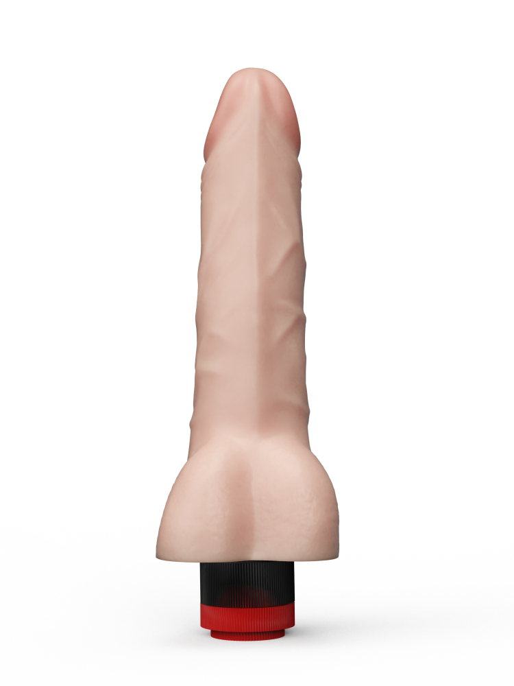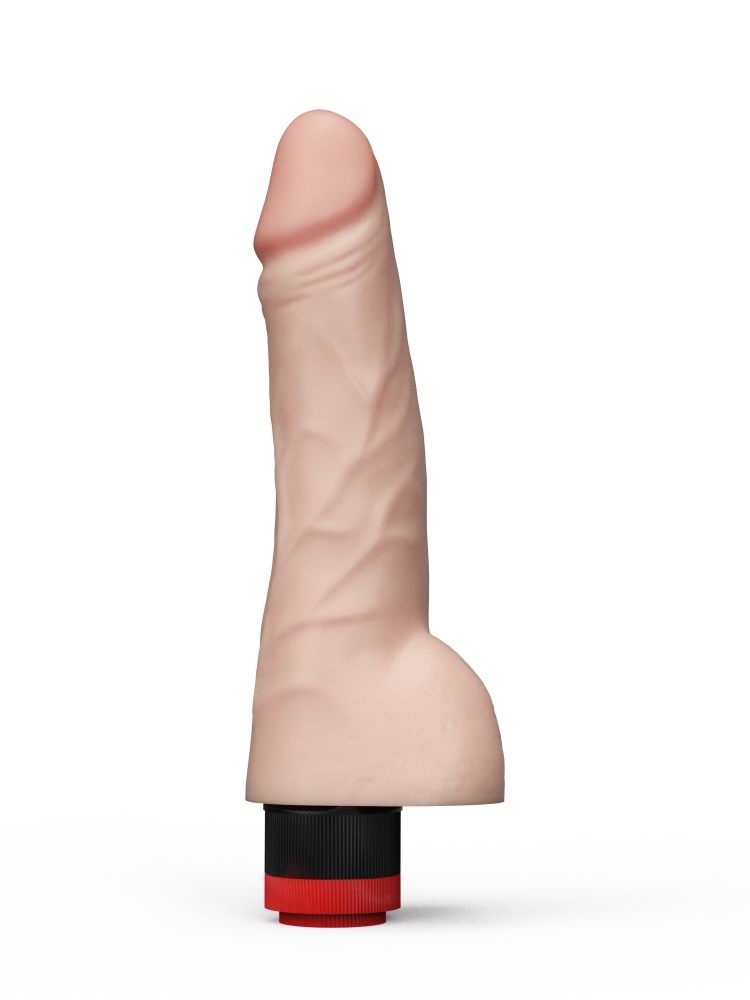 Вибромассажёр телесного цвета. Имеет форму члена с ярко-выраженной головкой. Необычайно приятный, рельефный, выполненный из «Неоскин» , передающий эффект мягкой реалистичной текстуры кожи, не имеет швов. Виброэлемент расположен по всей длине изделия. Степень вибрации регулируется при помощи кнопки, расположенной в основании. Общая длина – 22 см, рабочая длина- 17,3 см, максимальный диаметр- 3,5 см. Работает от 2АА батареек (нет в комплекте). Упаковка: картонная коробка с принтом.