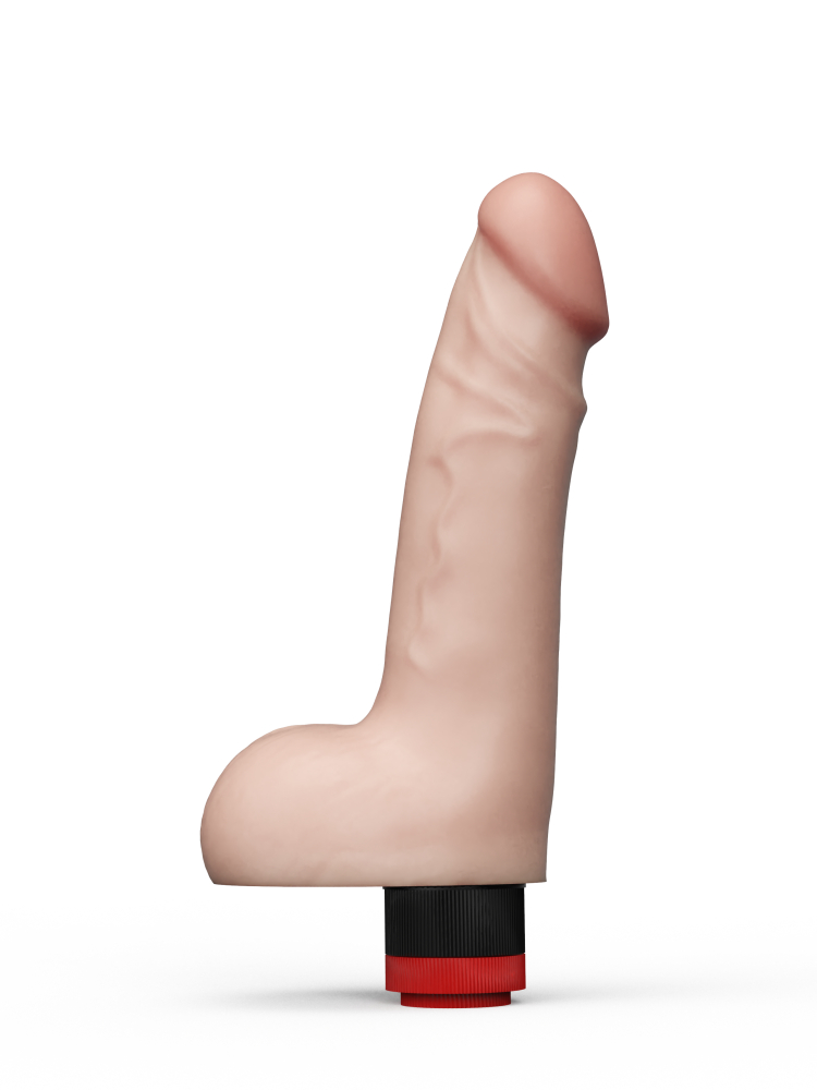 Вибромассажёр телесного цвета. Имеет форму члена с ярко-выраженной головкой. Необычайно приятный, рельефный, выполненный из материала «Неоскин» , передающий эффект мягкой реалистичной текстуры кожи, не имеет швов. Виброэлемент расположен по всей длине изделия. Степень вибрации регулируется при помощи кнопки, расположенной в основании. Общая длина – 23 см, рабочая длина-15 см, максимальный диаметр -4,5 см. Упаковка: картонная коробка с принтом.
