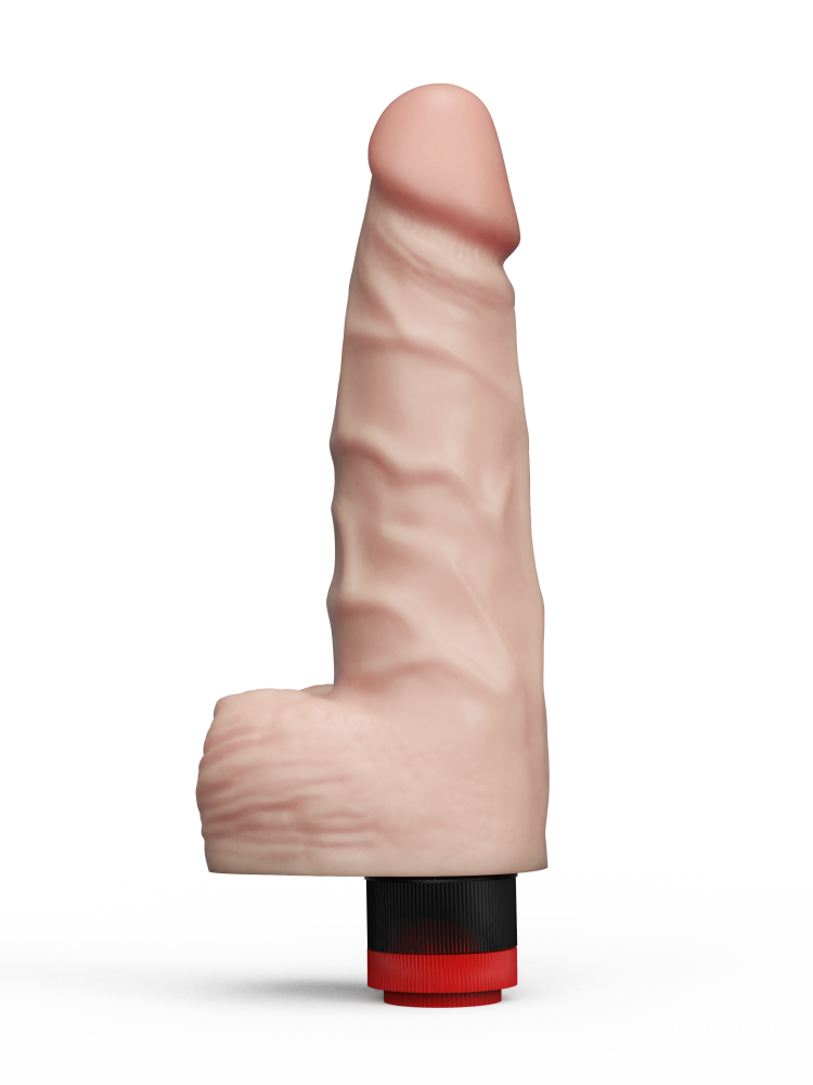 Вибромассажёр телесного цвета. Имеет форму члена с ярко-выраженной головкой. Необычайно приятный, рельефный, выполненный из материала «Неоскин» , передающий эффект мягкой реалистичной текстуры кожи, не имеет швов. Виброэлемент расположен по всей длине изделия. Степень вибрации регулируется при помощи кнопки, расположенной в основании. Общая длина – 22,5 см, рабочая длина-15 см, максимальный диаметр -4,5 см. Упаковка: картонная коробка с принтом.