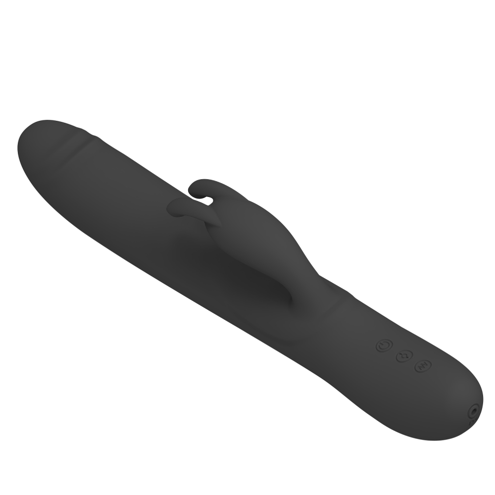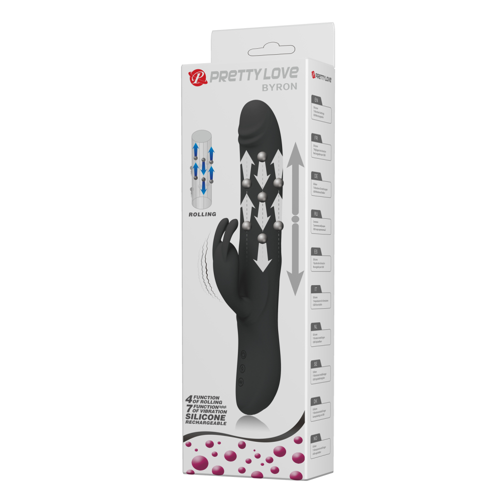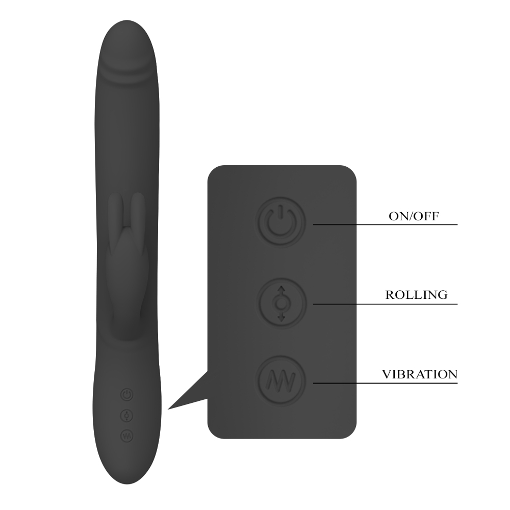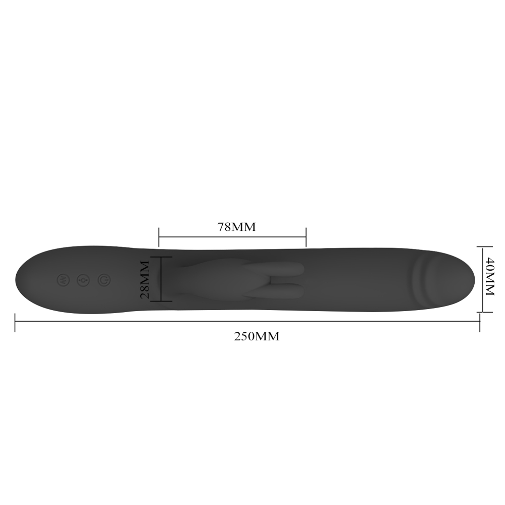 Многоскоростной перезаряжаемый вибратор пурпурного цвета. Имеет клиторальный стимулятор в виде зайчика. Вращающиеся шарики снабжены 4ю режимиами ротации. Гладкая поверхность. Материал - силикон. Имеет 7 режимов вибрации, управление производится при помощи сенсорных кнопок у основания игрушки. Общая длина - 25 см, рабочая длина - 16 см, максимальный диаметр - 3,5 см, длина клиторального отростка - 7 см, диаметр - 2,2 см. Работает от USB (есть в комплекте). В комплекте мешочек для хранения. Упаковка: картонная коробка с принтом.