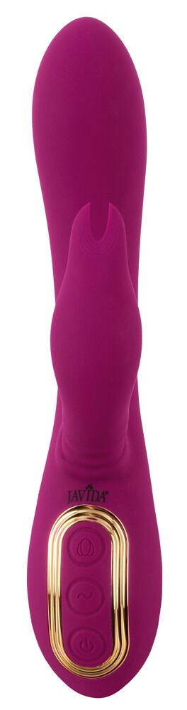 Вибратор-кролик с 3 моторчиками одновременно стимулирует вагину и клитор. Внутри ствола вращаются массажные бусины, а кролик двигается вперед-назад, создавая синхронную стимуляцию. 10 режимов вибрации вала и кролика и 5 скоростей движения можно регулировать одним нажатием кнопки. Изготовленный из шелковисто-мягкого силикона, вибратор легко вставляется, гибко адаптируется к телу и обеспечивает комфортные ощущения. Он водонепроницаем для использования в душе или в ванной. Перезаряжаемый — в комплекте USB-кабель для зарядки. Длина 23 см, длина введения 13 см, максимальный диаметр 3,8 см. Вес 227 г. Материалы: силикон, полиуретан, ABS.