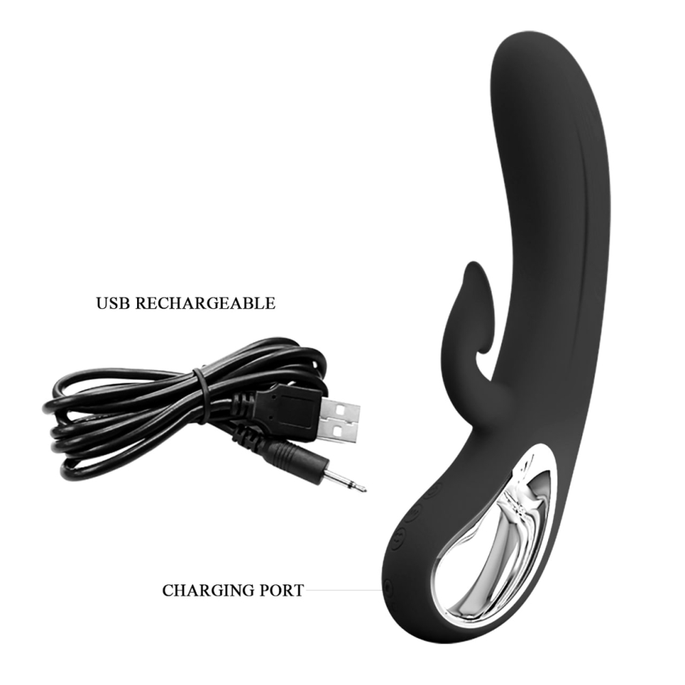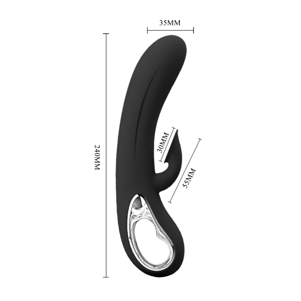 Многоскоростной вибратор с всасывающим клиторальным отростком и удобным основанием с отверстием. Немного расширяется к вверху, с изогнутой головкой и немного рельефной поверхностью. Имеет 12 режимов вибрации и всасывания, которые переключаютя с помощь кнопок у основания игрушки. Материал - силикон. Необычайно мягкий и приятный на ощупь. Без запаха. Водонепроницаемый. Заряжается от USB - провода (в комплекте). Общая длина игрушки - 20,5 см, рабочая длина (до отростка) - 12 см, максимальный диаметр 3,3 см. Общая длина стимулятора - 6 см, диаметр присоски - 2х3 см.Упакован в стильную коробку.